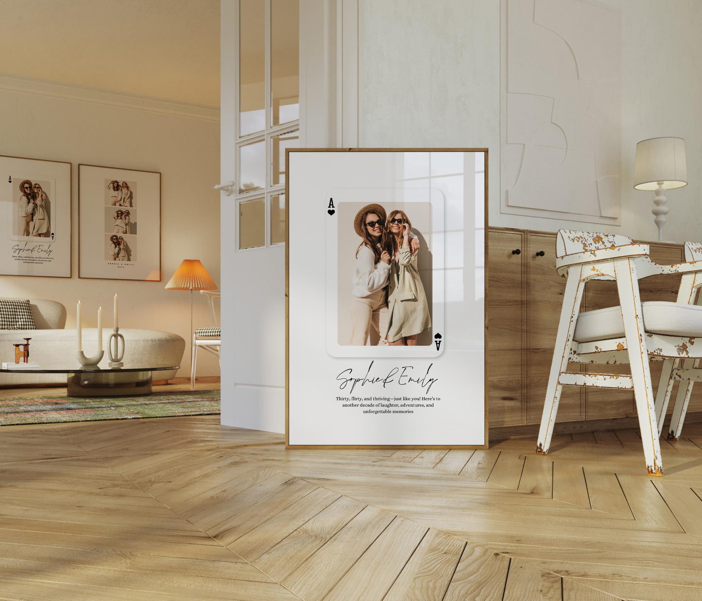 Best Friend Playing Card Birthday Print, 30th 40th 50th Best Friend Birthday Trendy Photo Birthday Gift