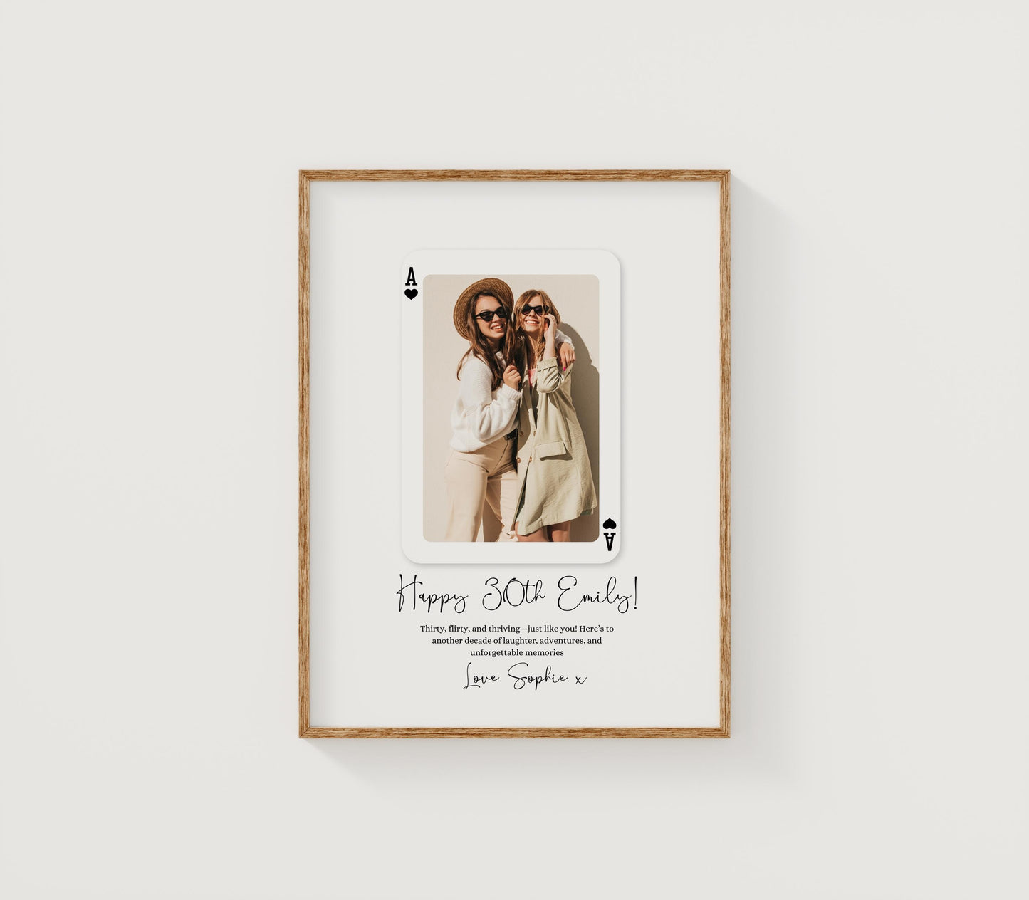 Best Friend Playing Card Birthday Print, 30th 40th 50th Best Friend Birthday Trendy Photo Birthday Gift