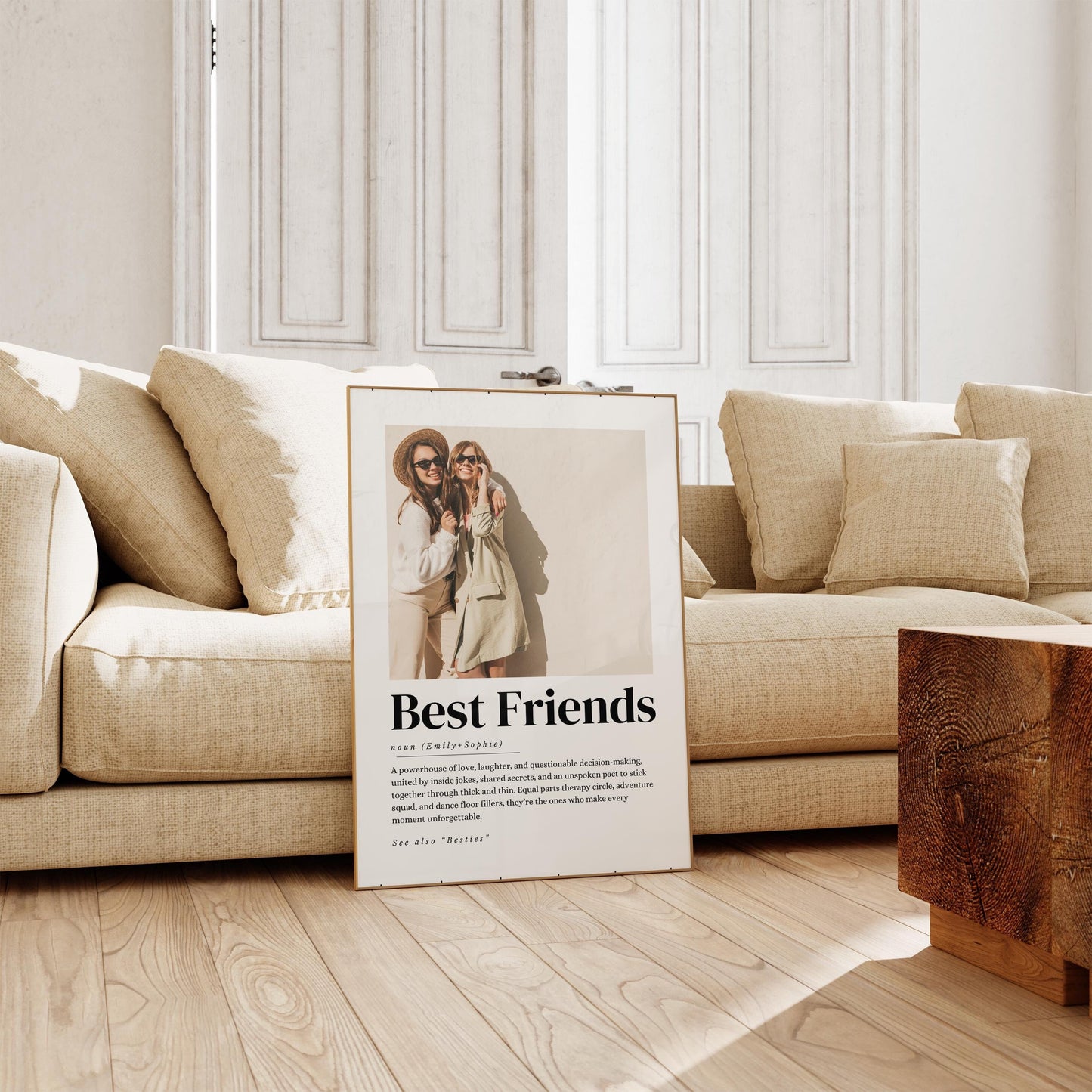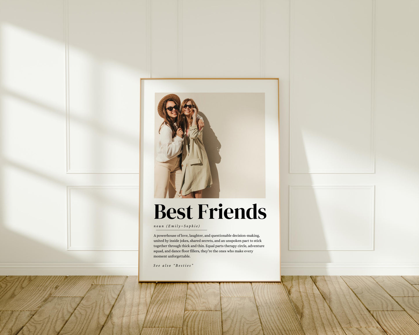 Celebrate the special bond of friendship with our charming best friend definition print. This unique wall art print beautifully captures the meaning of being a bestie, making it an ideal gift for her on any occasion, be it a birthday or Christmas. Personalise it with a memorable photo to create a heartfelt and meaningful present that she'll treasure forever. Perfect as a friendship gift or a personalised gift for your best friend, this definition print adds a warm touch to any space, reminding you both of the wonderful moments you share. Show your appreciation and love with this delightful best friend poster—it's the perfect expression of what true friendship means!